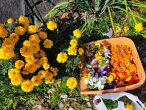 「未来につなげよう!ゆめ花道」〜オレンジガーデニングプロジェクト〜もみじ園のお客様とおしゃべりが弾み、お茶菓子まで頂いて(笑)。11月3日(祝)に向けて花がら摘みをしました。キレイになりました(^^)。